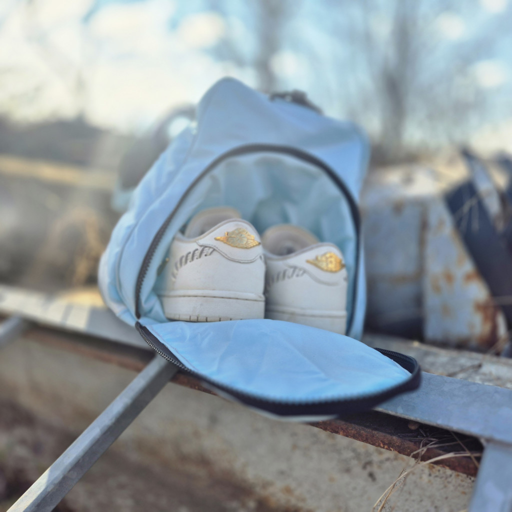 Unisex sporttáska - világoskék, fehér, cipőtartóval